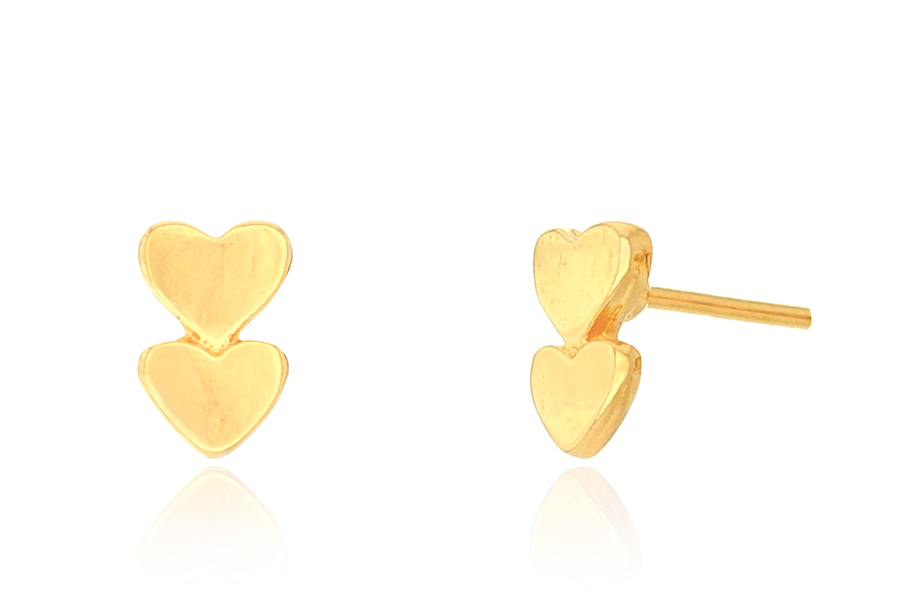 BRINCO BANHADO EM OURO, DOIS CORAÇÕES 8mm ALTURA