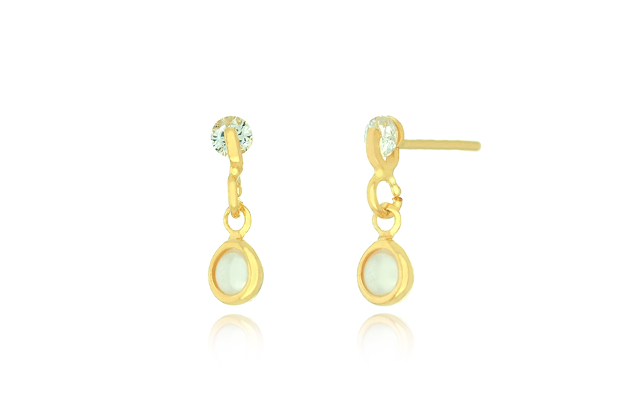 BRINCO BANHADO EM OURO, ZIRCÔNIA 3mm E PÉROLA 4,50mm LARGURA