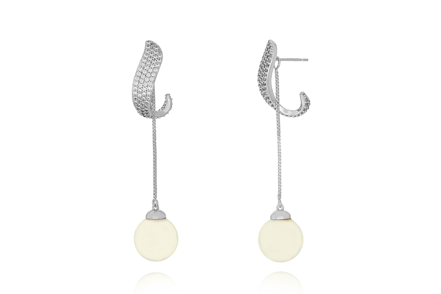 BRINCO BANHADO EM RÓDIO BRANCO, BASE 21mm, VENEZIANA E PÉROLA SHELL 12mm