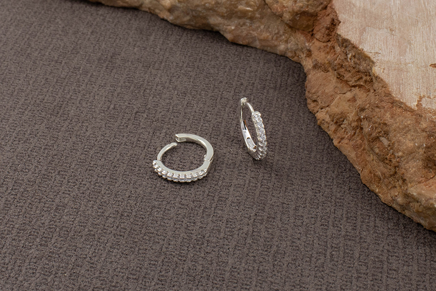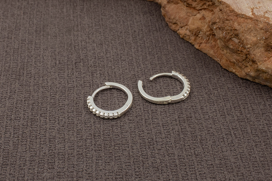 BRINCO EM PRATA, ARGOLINHA CLICK 11,80mm DIÂMETRO, ARO 1,80mm LARGURA, 1 FILEIRA DE ZIRCÔNIAS