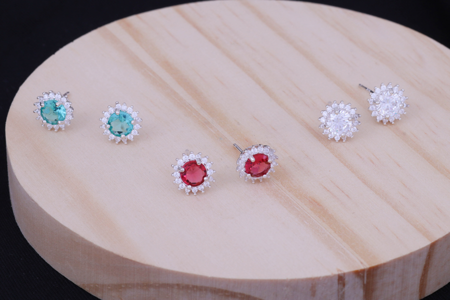 BRINCO EM PRATA, ZIRCÔNIA REDONDA COM BORDAS CRAVEJADAS, 8,50mm DIÂMETRO