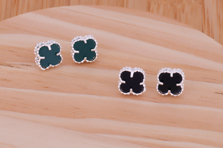 BRINCO EM PRATA, TREVO COM LATERAIS EM FILIGRANA, 8,50mm ALTURA