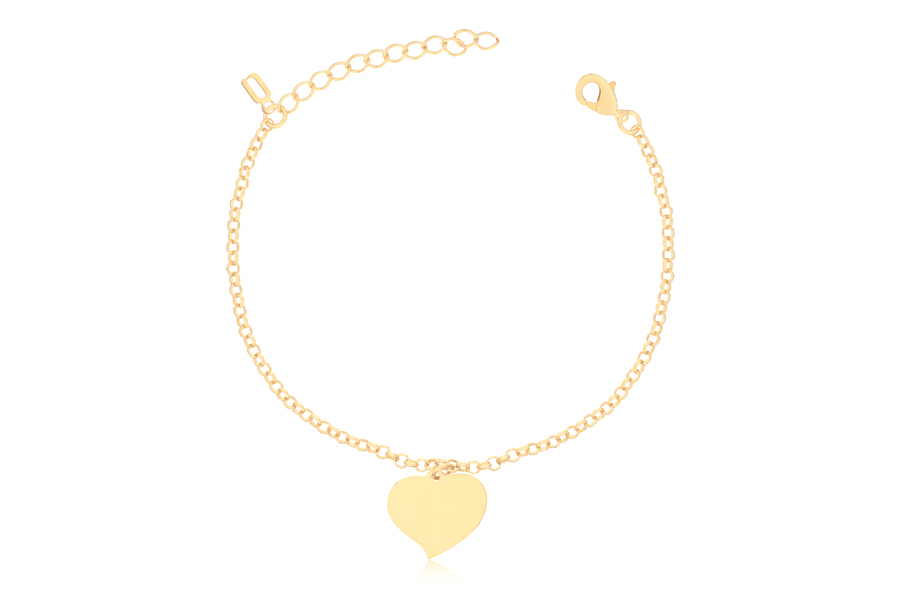 PULSEIRA BANHADA EM OURO, ELO PORTUGUÊS 3mm, 16cm COMPRIMENTO, EXTENSOR 5cm E CORAÇÃO 15mm LARGURA
