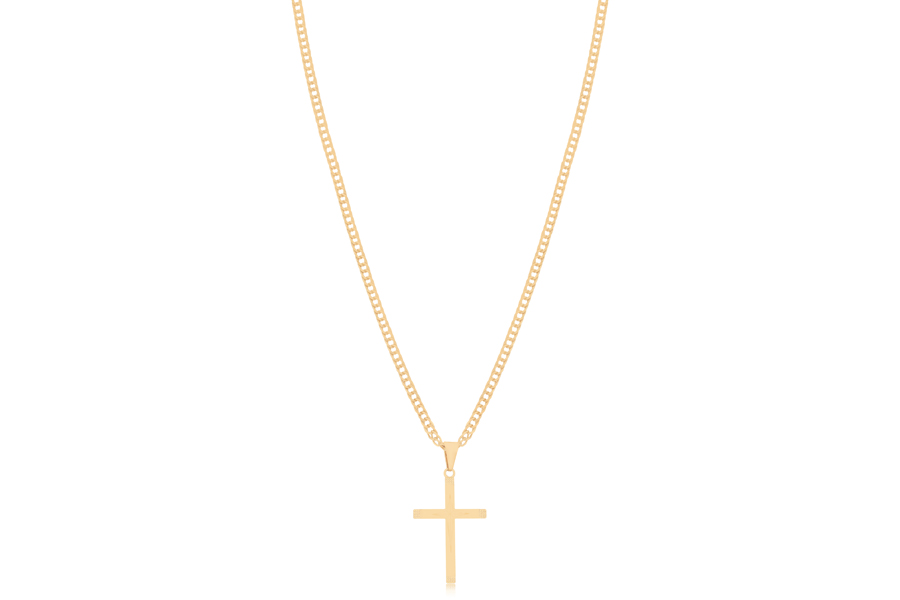 GARGANTILHA BANHADA EM PRATA LEVE, ELO 2,30mm LARGURA, 60cm COMPRIMENTO E CRUZ 25mm ALTURA, 16mm LARGURA